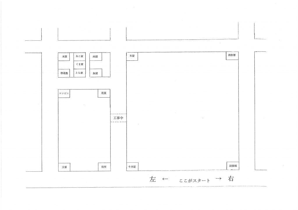問題:スタートからくまの家へ行くまでの道順を説明してください。ただし、工事中のところは通ることができません。