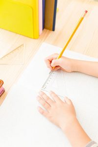授業では,『実物大の三角形や四角形の辺の長さや高さを定規で測り,その長さを利用して,面積を求める』ような,実感重視の授業を行ってきましたが,『底辺と高さ』の概念を理解する時期は,個々に差があるため,定期的に問題に触れる機会を設け,経験値を積むことが重要です。冬期講習では,基本問題の確認から取り組みますが,発展的な問題にも触れ,図形に対する様々な捉え方を身に付けることを目標とします。